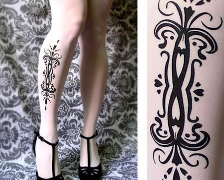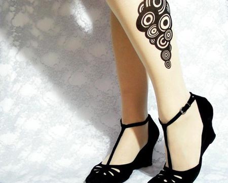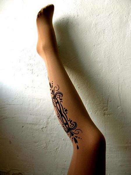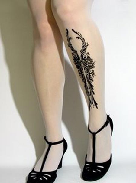 Galería de fotos de las medias con dibujos tatuados para piernas femeninas: