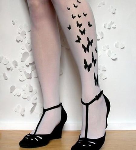 - medias femeninas con tatoos de mariposas