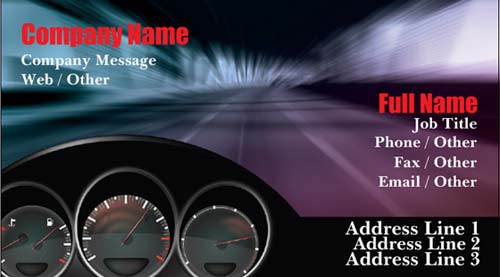 - Ejemplo de tarjeta de visita colorida para coches, con tablero de auto.