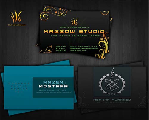 - Varios ejemplos de tarjetas de visita con colores y diseños creativos almacenadas