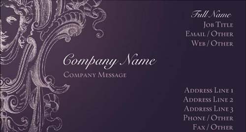 - Tarjeta de visita color purpura con simbolos victorianos en la orilla