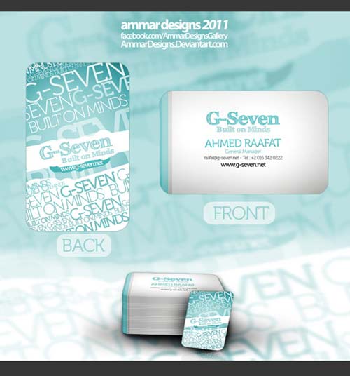 - Tarjetas de Presentación de G Seven con colores azules pastel, ideas creativas