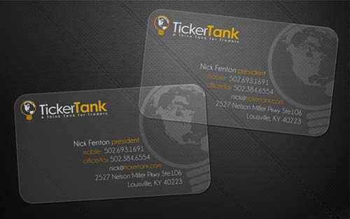- Tarjeta de Visita de Ticker Tank impresos en plástico flexible a dos tintas