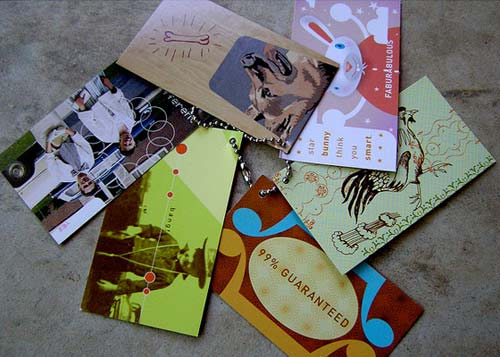 - Tarjetas de visita de director creativo impresas en ambos lados con leyendas curiosas