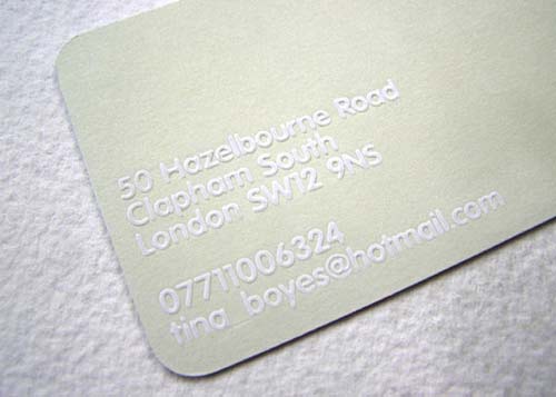 - Tarjeta de Visita con fondo blanco y letras blancas saltadas y redondeadas