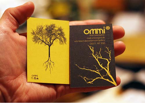 - Tarjeta de presentación de Ommi a dos tintas con árboles incluidos