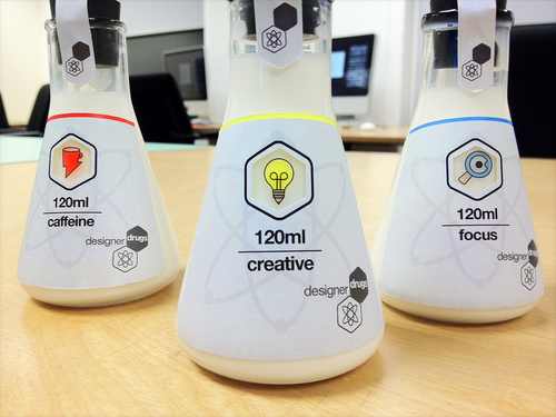 - Botella estilo matraz para pastillas con un diseño original