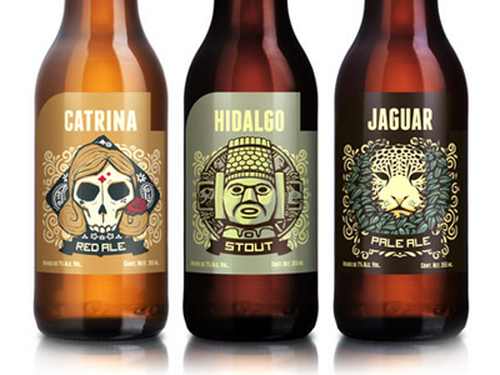 - Botellas de vidrio para cerveza con un diseño tribal